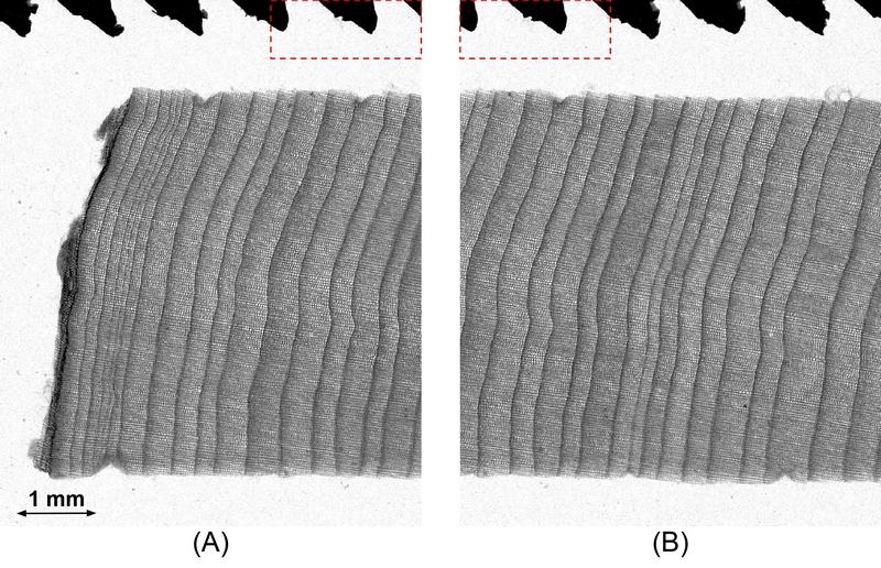 -Por un lado, respondimos a una solicitud del INTA utilizando estos sensores para analizar el interior de muestras de madera, pertenecientes a especies nativas de los bosques de la zona de Bariloche. Lo hicimos mediante radiografías, para evaluar específicamente los anillos de crecimiento. Esta es una herramienta muy valiosa para estudios medioambientales. Por otro lado, desarrollamos un microtomógrafo computarizado. Así como un tomógrafo médico permite obtener imágenes en 3D del cuerpo humano, nuestro equipo nos permite analizar el interior de diversas muestras en tres dimensiones con una altísima resolución espacial. Actualmente, en nuestro grupo utilizamos este tomógrafo para inspeccionar el interior de dispositivos electrónicos como, por ejemplo, microchips, sin necesidad de destruirlos o desencapsularlos, pero su versatilidad permite aplicarlo al estudio de una gran variedad de materiales. Además, la precisión del sistema nos permite implementar técnicas avanzadas, como el contraste de fase, que resalta detalles minúsculos y bordes que pasarían inadvertidos en una radiografía convencional.