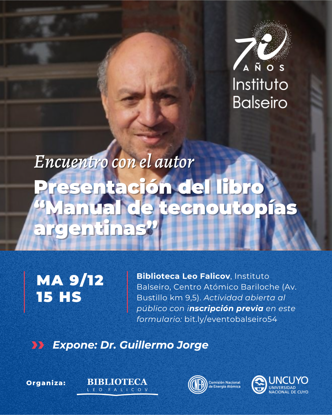 Organizan: Biblioteca Falicov en articulación con la Secretaría de Extensión y Cultura Científica del Instituto Balseiro (CNEA-UNCUYO) y la División Patrimonio Científico y Cultural de la CNEA.